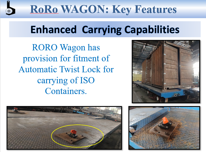 - ★ RORO Wagon has provision for fitment of Automatic Twist Lock for carrying of ISO Containers.