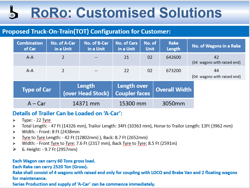 - ★ New design of RO-RO will give much more option up to 92 in normal condition and 114 types of trucks may be get transported in dedicated freight corridors.