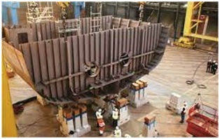 Slipway Cradles, installed at ship building yards are meant for launching of new made ships into water. As such, part of the Cradle will be immersed in bay water and subjected to buoyant forces. Mostly, build up sections are used for fabrication. Fabrication is done, using modern welding techniques with stringent quality control. Slip Way Cradles made to strict standards of classification of societies and shall be compatible to launch several classes of ships. BCL has successfully cleared the process of entering into manufacturing of blocks and Mga blocks for shipbuilding with a trial order from GRSE.
